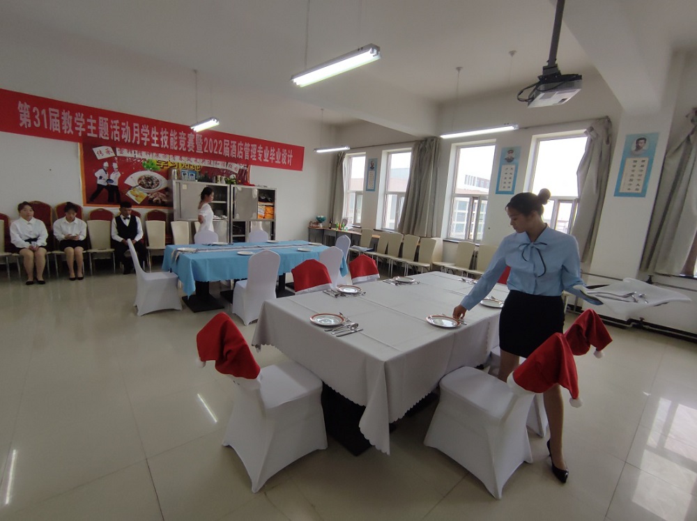 6月10日,酒店管理与数字化运营系以对标国际标准、展示中国特色、贴近生产实际、体现工作过程为宗旨,开展了由中餐主题宴会设计及服务、西餐主题宴会设计及服务和客房主题设计及服务三部分内容组成的餐厅服务赛项,用国家职业技能竞赛的标准来衡量学生的专业技能,提高学生主动学习的积极性,缩小在校所学技能与将来实习就业岗位的差距,更好地与行业企业接轨。