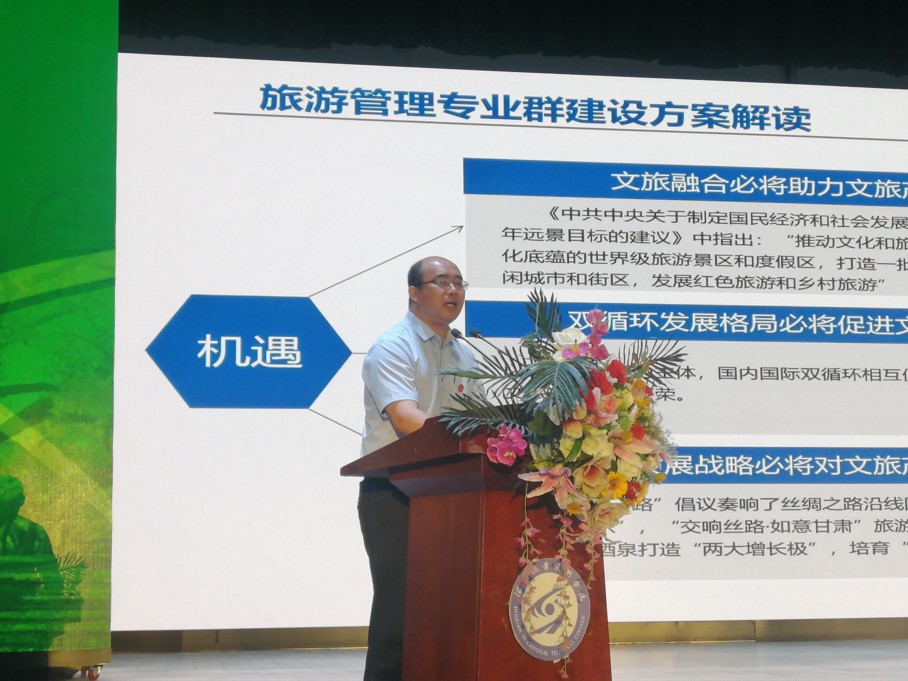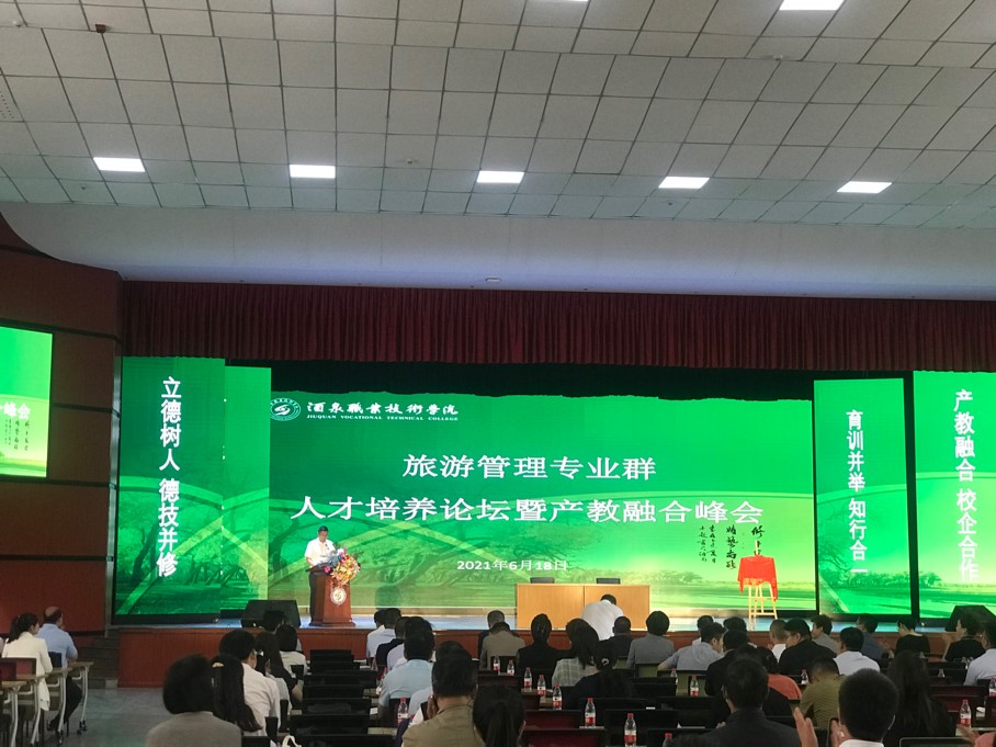 为持续深化教育教学改革,进一步优化各专业人才培养方案,提高人才培养质量,6月18日旅游管理专业群人才培养论坛暨产教融合峰会在胡杨文化活动中心举行。酒泉职业技术学院党委书记、校长易志军,酒泉市文体局副局长王琰花,校党委委员、副校长许军以及教务处、合作发展出、招生就业处领导参加了次会议,来自全国各地旅游管理专业群相关专业的近50家企业代表以及酒泉市域内中职学校也出席了此次会议。