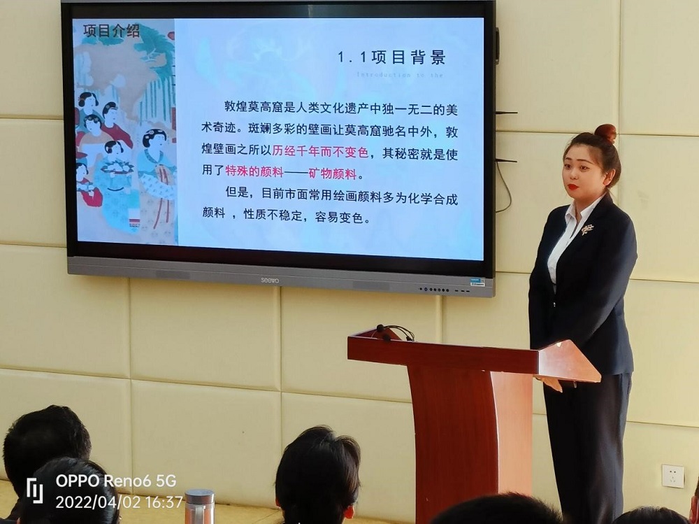 经过激烈角逐,《新乡旅时代—戈壁凌石文创开发》《基于乡村振兴的敦煌扎染非遗传承与创新》等2个项目获得一等奖;《基于文旅融合的河西岩画文创产品开发》《基于乡村振兴的大漠戈壁石工艺品开发》《原花青素软糖精深加工技术研究与应用》《掐丝珐琅工艺非遗技艺传承与创新》等4各项目荣获二等奖:《戈壁玉雕文创产品开发》《“新时代时代的芨芨编”文创产品开发》《互联网+戈壁石艺画非遗文创产品直播销售》等6个项目荣获三等奖,其余项目荣获优秀奖。