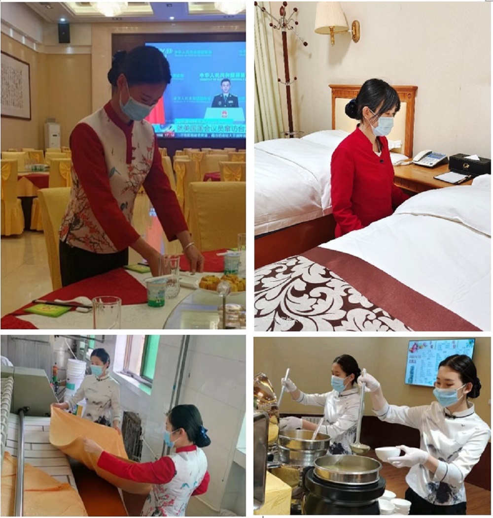 4月12日,2020级酒店管理与数字化运营专业22名同学前往东风航天城,在经过短暂休整后,同学们纷纷投入到紧张有序的工作岗位上,有在前台接待的、有在客房部的、有在餐饮部的,虽然岗位不同,但同学们都怀着期盼的心情,为做好一间房,能工作到凌晨1点,为提前准备好保障工作的服务人员能吃上一口热腾腾的早饭,能凌晨4点起床。