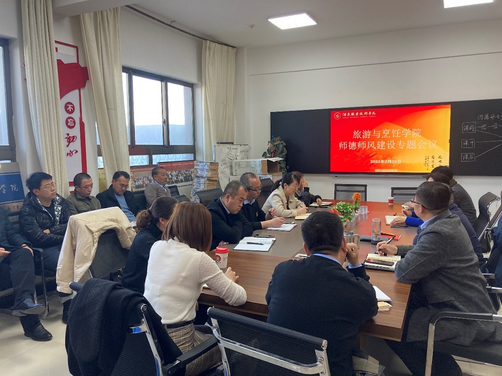 为深入贯彻党的二十大精神,加强师德师风建设,提高教职工队伍的职业素养与师德师风,2月24日下午,旅游与烹饪学院召开了师德师风建设专题教育活动。会议由旅游与烹饪学院党支部副书记张来顺主持,全体教职工参加了此次会议。
